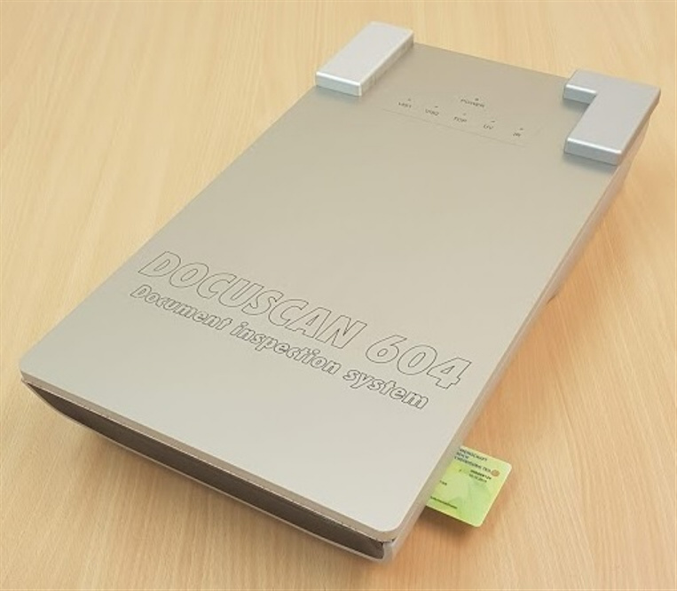 A DocuScan 604 berendezés az eredetiségvizsgálat során bemutatott papír és kártya alapú jármű kísérő okmányok, illetve igazoló iratok elektronikus formában történő rögzítésére, a rajtuk található látható és rejtett biztonsági jelek ellenőrzésére alkalmas, így használatával a hamis illetve hamisított iratok kiszűrhetők.